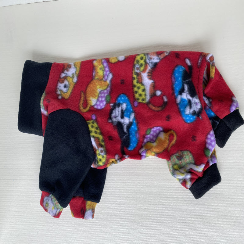 One of a kind Red slip on Fleece pajama with Puppy and Cat prints