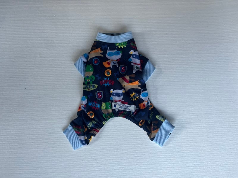 One of a kind Navy Blue double knit cotton Super Hero pajama